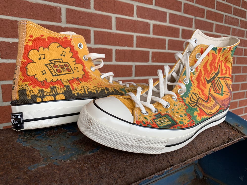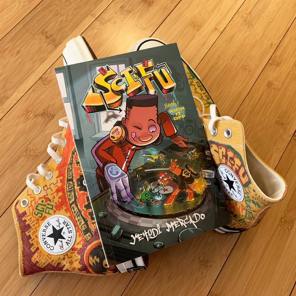 COMBO DEAL! A pair of shoes and a signed copy of SCI-FU! Send me a pair of NEW Chuck Taylors and I will tag them up with my doodles and mail them to you. Makes a great gift! Make sure you send me a NEW pair of shoes because I'm going to use the box to ship it back to you.